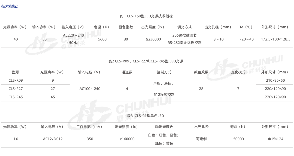 CLS-R09、CLS-R27和CLS-R45型 LED光源無(wú)噪音,輸出色豐富,混色均勻;