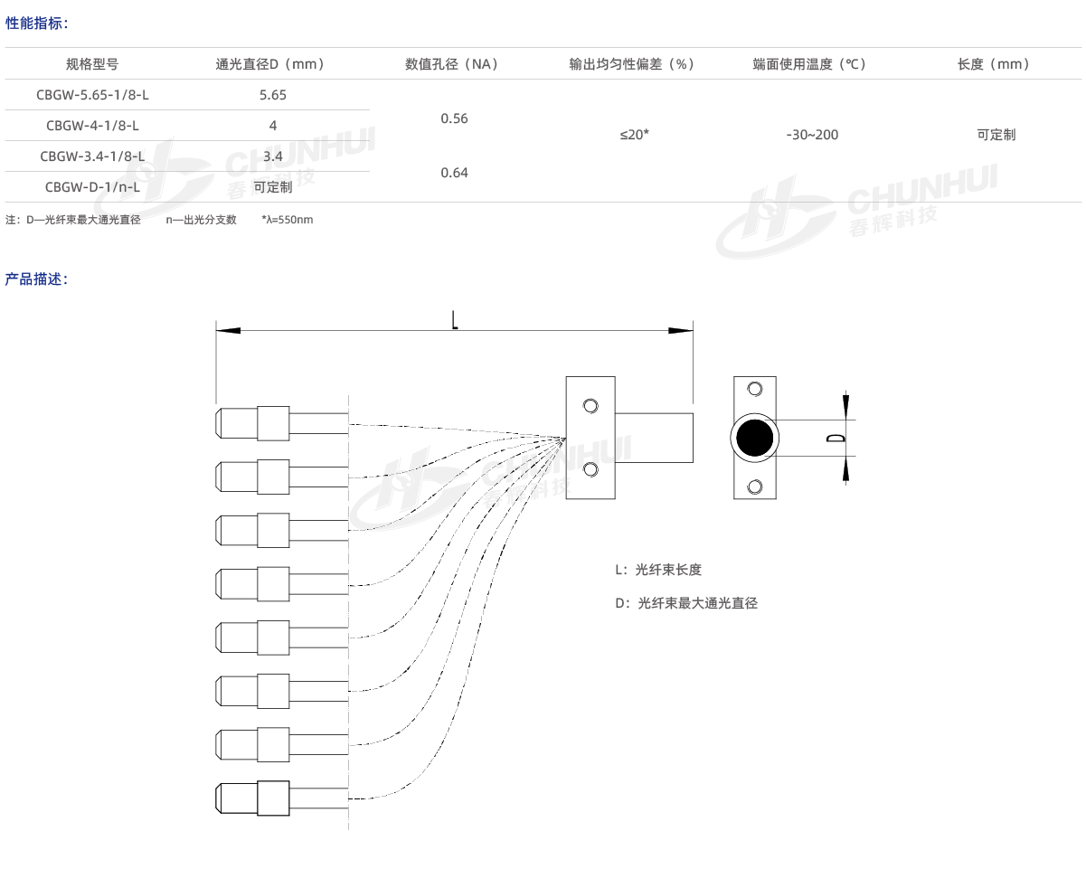 光譜傳輸范圍廣、傳光效率高、光輸出均勻。
